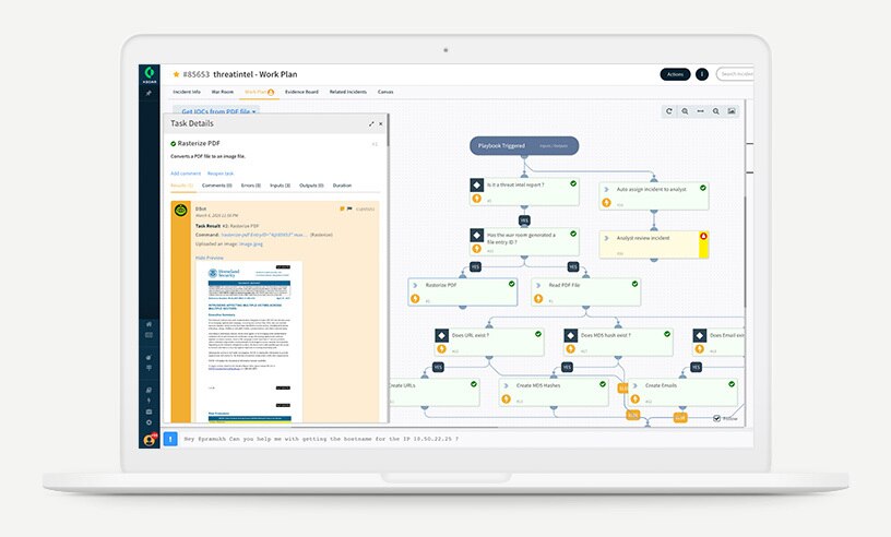 Security orchestration, automation and response (SOAR) capabilities use playbook-driven automation to combine case management, process automation and threat intelligence.