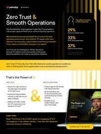 Zero Trust OT Security from Palo Alto Networks avoids operational roadblocks while enabling asset-level segmentation and automated threat prevention.