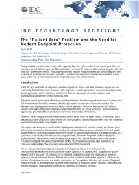 Today's digital transformation reality differs greatly from the cyber reality of the recent past. Current signature-based defenses provide little protection in a world of malware with singular targets, referred to as the "patient zero effect." This paper from IDC, a premier global provider of market intelligence, examines modern endpoint protection, describing how the evolution of malware has created a need for a modernized approach to endpoint protection. It also looks at the role of Palo Alto Networks Traps offering in this critical market.
